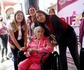 La presidenta Xóchitl Flores, entregó 132 aparatos auditivos, 55 sillas de ruedas, 2 bastones de un punto, 1 bastón de cuatro puntos y 6 andaderas