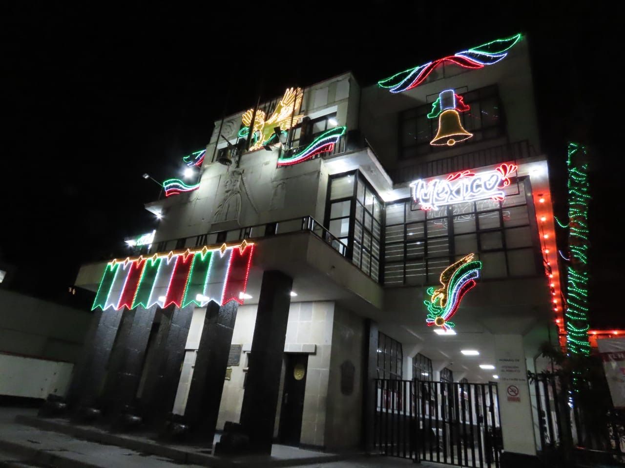 El centro del Jardín municipal de Texcoco fue el escenario en donde se realizó el encendido del alumbrado patrio por parte del presidente municipal Nazario Gutiérrez Martínez, que estuvo acompañado por la presidenta honoraria del Sistema Municipal para el Desarrollo Integral de la Familia (DIF) Texcoco, integrantes del cuerpo de gobierno, así como directores de las diferentes áreas de la administración municipal, entre ellos el Director de Servicios Públicos Andrés Barrón.