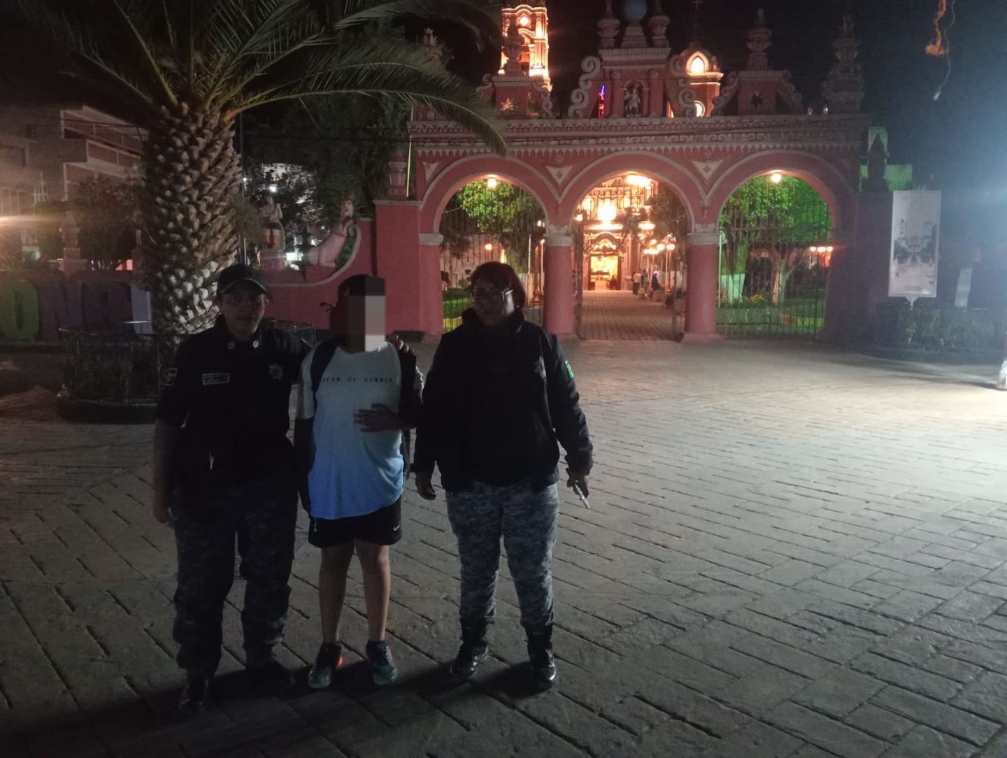 Elementos de la Policía de Género realizaron un recorrido a pie por la plaza vieja de Chiconcuac, donde lograron ubicar al menor.