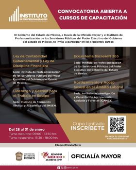 El Instituto de Profesionalización de los Servidores Públicos pone a disposición cuatro cursos que se llevarán a cabo del 28 al 31 de enero
