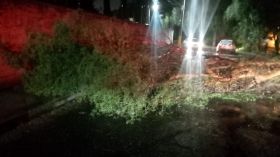 Se laboró durante la noche para el retiro de árboles derribados por fuertes ráfagas de viento