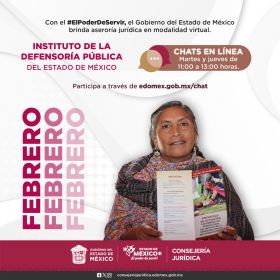 La orientación se otorga a través de chat en línea, los martes y jueves de 11:00 a 13:00 horas por parte de personas defensoras públicas en: https://edomex.gob.mx/chat._