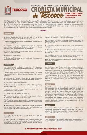 La convocatoria la pueden consultar en la Facebook oficial del gobierno municipal Ayuntamiento de Texcoco