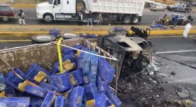 El choque y volcadura de un tráiler que transportaba gallinas ocurrió en la carretera Calpulalpan dirección Texcoco a la altura de la ’Curva del Diablo’, en el poblado de Santa Inés