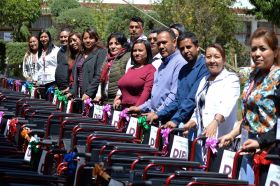 En el Centro de Desarrollo Comunitario "San Pedro", de Cabecera Municipal, se entregaron 60 sillas de ruedas, 12 bastones y 3 andaderas a personas de la tercera edad y discapacitadas.