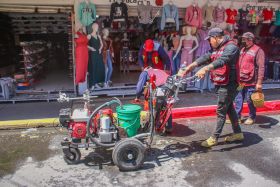 Señalización con pintura roja en las guarniciones de las avenidas para indicar ’No Estacionarse’
