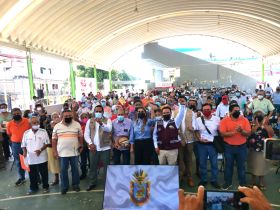 Encabeza la entrega de las tarjetas de Pensión, junto a la gobernadora Evelyn Salgado y el delegado federal Iván Hernández