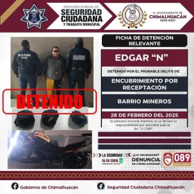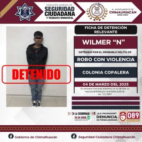 La detención se realizó gracias a los operativos de la Dirección General de Seguridad Ciudadana y Tránsito Municipal de Chimalhuacán
